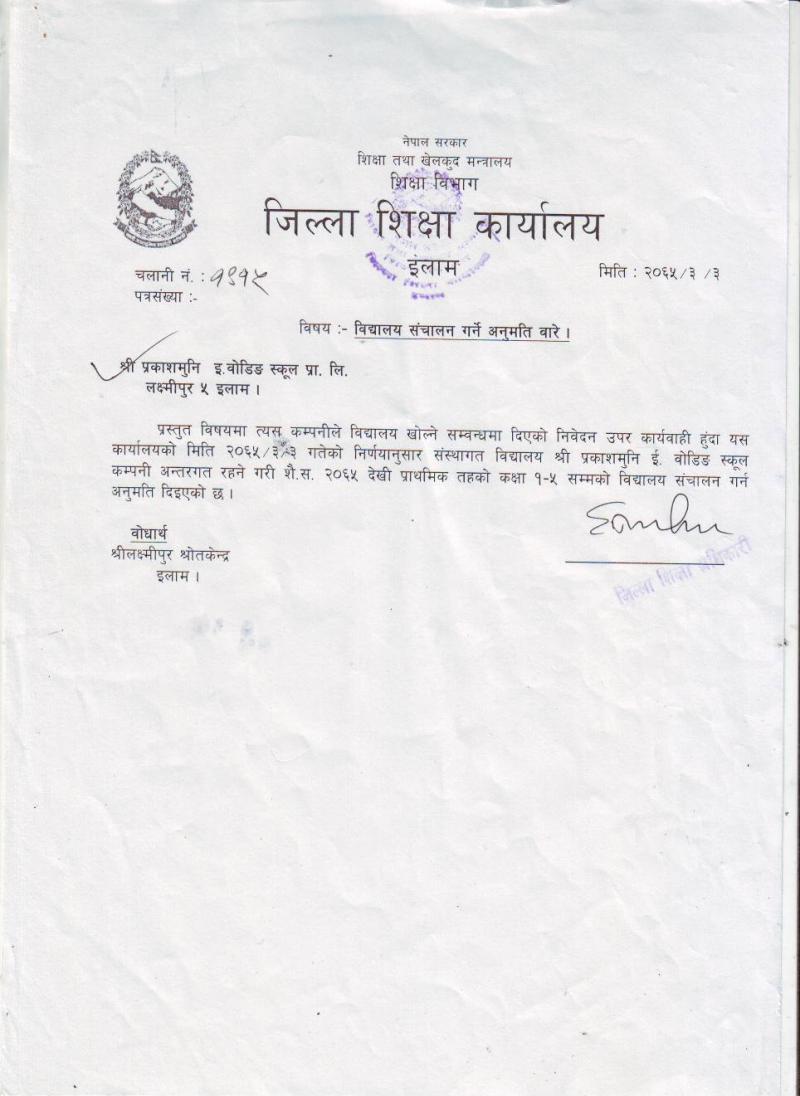 Authorized letter of office of Educational District; Illam, Ministry of Educational and Sport, Nepal Government